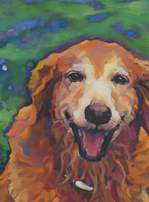 Meanwhile, I wanted to share this new painting of Jake, the Golden Retriever, which was commissioned by his “Mom” as a birthday surprise for his "Dad.” Jake LOVES to go swimming. Here he is after a good swim, dripping wet and grinning from ear to ear while he dries off amidst a crowd of cheery Texas bluebonnets.
